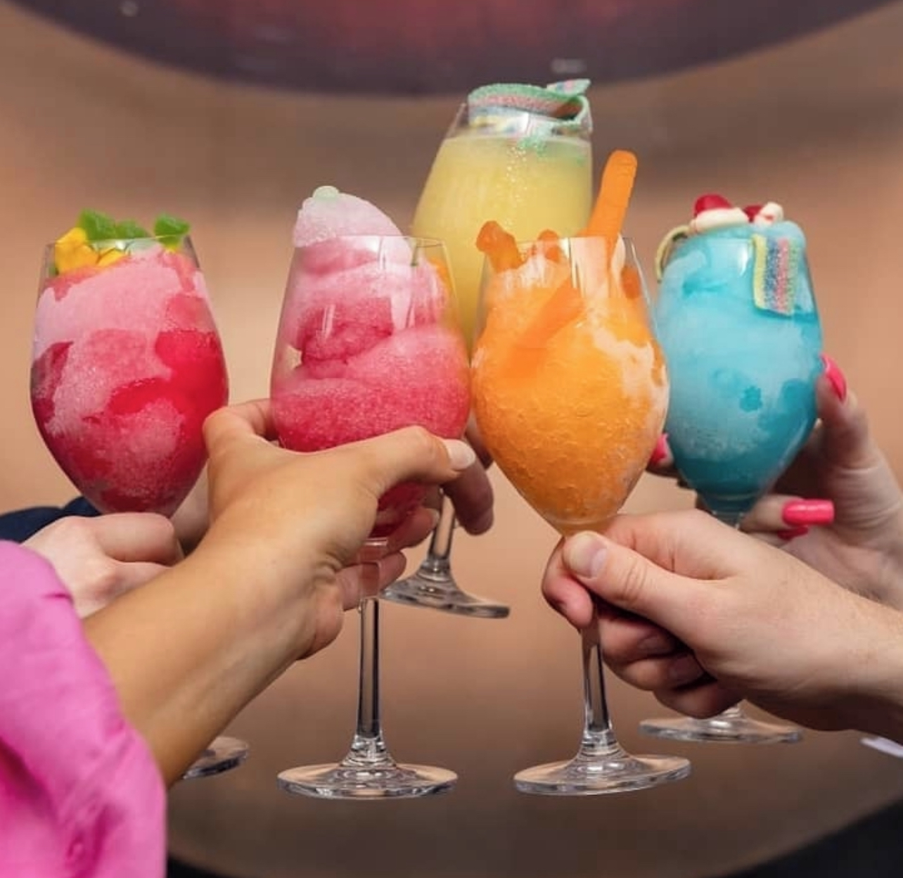 Guarniciones frutas, especies, sal, Tajín, azúcar, perlas comestibles, gomitas vasos y sorbetes plásticos, mezcladores ,servilletas están incluidas dependiendo los cócteles seleccionados